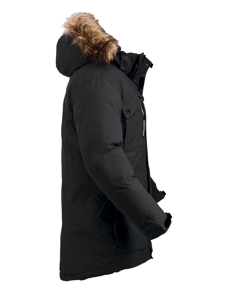 Superwarmer Expeditions Parka. Viele, grosse Taschen, teilweise mit wasserdichten Reissverschlüssen. Die Kapuze sowie der Kunstpelz sind getrennt abnehmbar. Abgedeckter Reissverschluss, Ärmelabschlüsse mit Klett verstellbar und mit gerippten