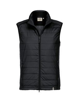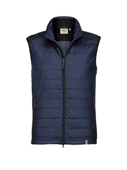 Leichte, wasserabweisende und atmungsaktive Hybridweste mit kontrastfarbigen Einsätzen an den Seiten, Schultern und Kragen, hochwertigem Zwei-Wege-Frontreißverschluss mit innenliegender Windstoppatte und Reißverschlussgarage und Einschubtaschen mit Reißverschlüssen. Alle Reißverschlüsse von YKK®. Saumabschluss mit verlängertem, abgerundetem Rückenteil und Reflexapplikation für bessere Sichtbarkeit. Weitenverstellbarem Saumabschluss mit Tunnelkordelzug und Stoppern. Hergestellt aus einem Materialmix aus atmungsaktivem Micro-Ripstop mit Wattierung aus pflegeleichten Kunstfasern und Einsätzen aus dehnfähigem Softshellmaterial. Gewebtes HAKRO Necklabel aus hochwertigem Kettsatin mit weichen, ultraschallgeschnittenen Bandkanten für höchsten Tragekomfort und gewebtes HAKRO Looplabel am linken Saum.