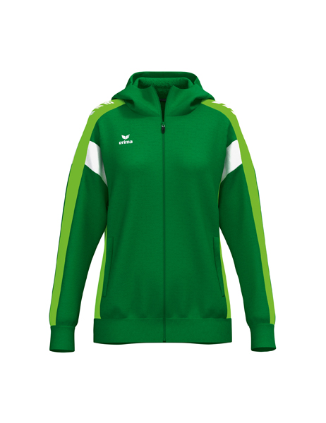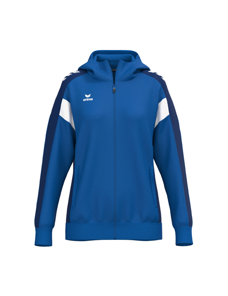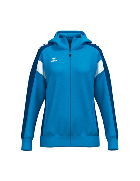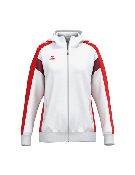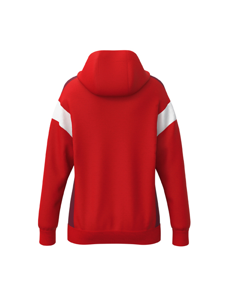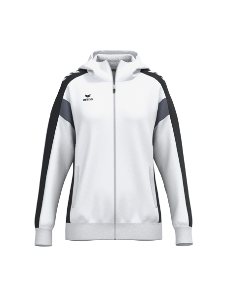 Der perfekte Mix aus Komfort und Style! Atmungsaktive Interlock-Innenseite; Regulärer Schnitt; Überschnittene Schulter; Gefütterte Kapuze; Kinnschutz; ERIMA Wings-Druck auf den Schultern; Seitlich verdeckte Reißverschlusstaschen